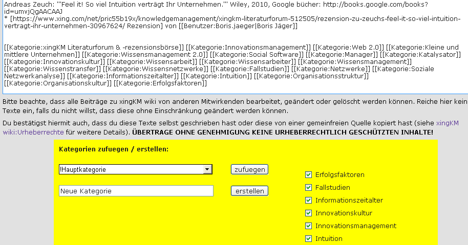 | 14:19, 3. Jun. 2011 | Tanneberger - WM-Instrumente.pdf (Datei) | 91 KB | Boris.jaeger | (Stephan Tanneberger: Ergebnisse der xingKM-Umfrage: Welches sind Ihre Top 3 Wissensmanagement-Instrumente, die Ihnen Ihre tägliche Arbeit ungemein erleichtern? Wuppertal, 2010. © Autor(en) Category:Literaturverzeichnis) | 1 | |